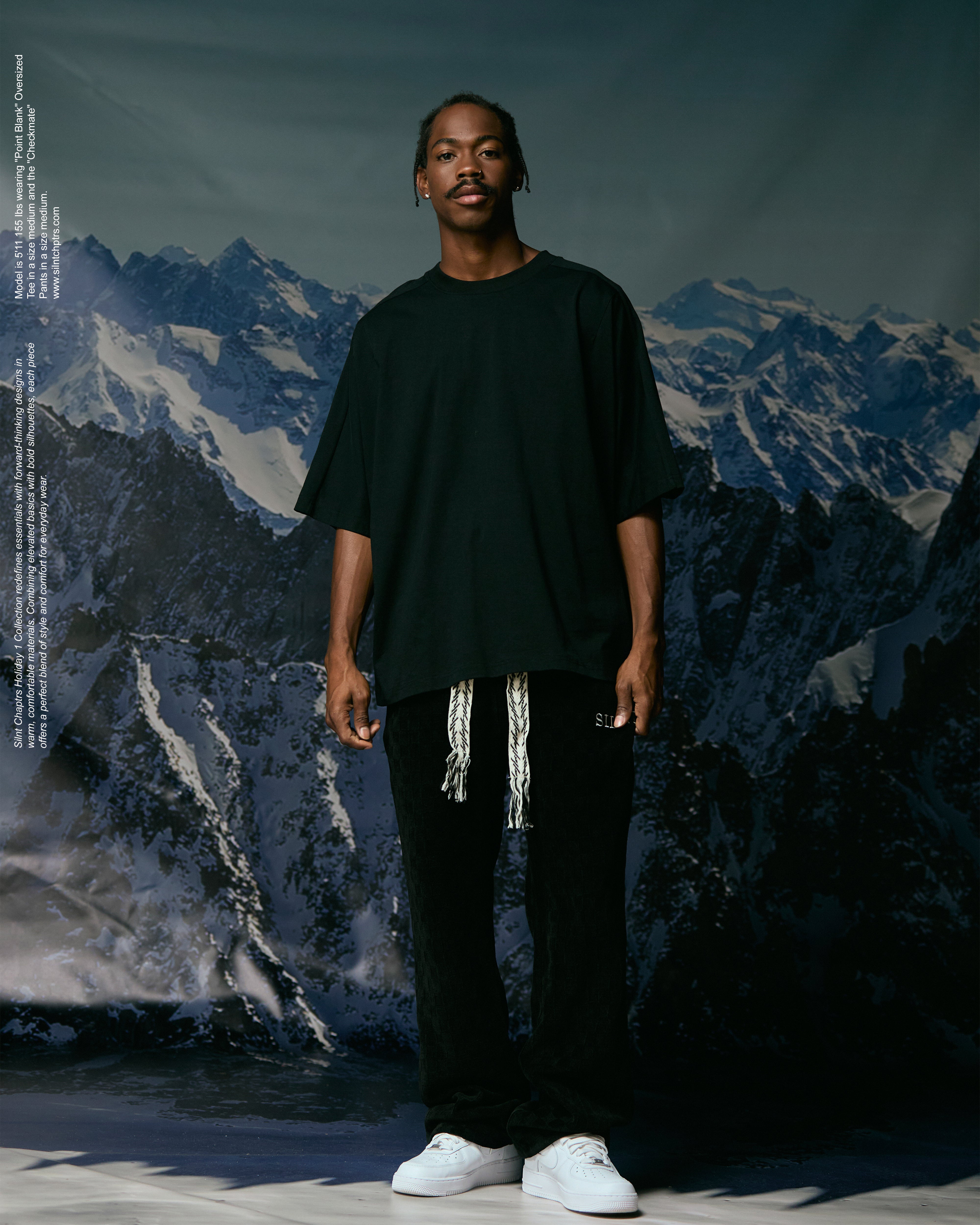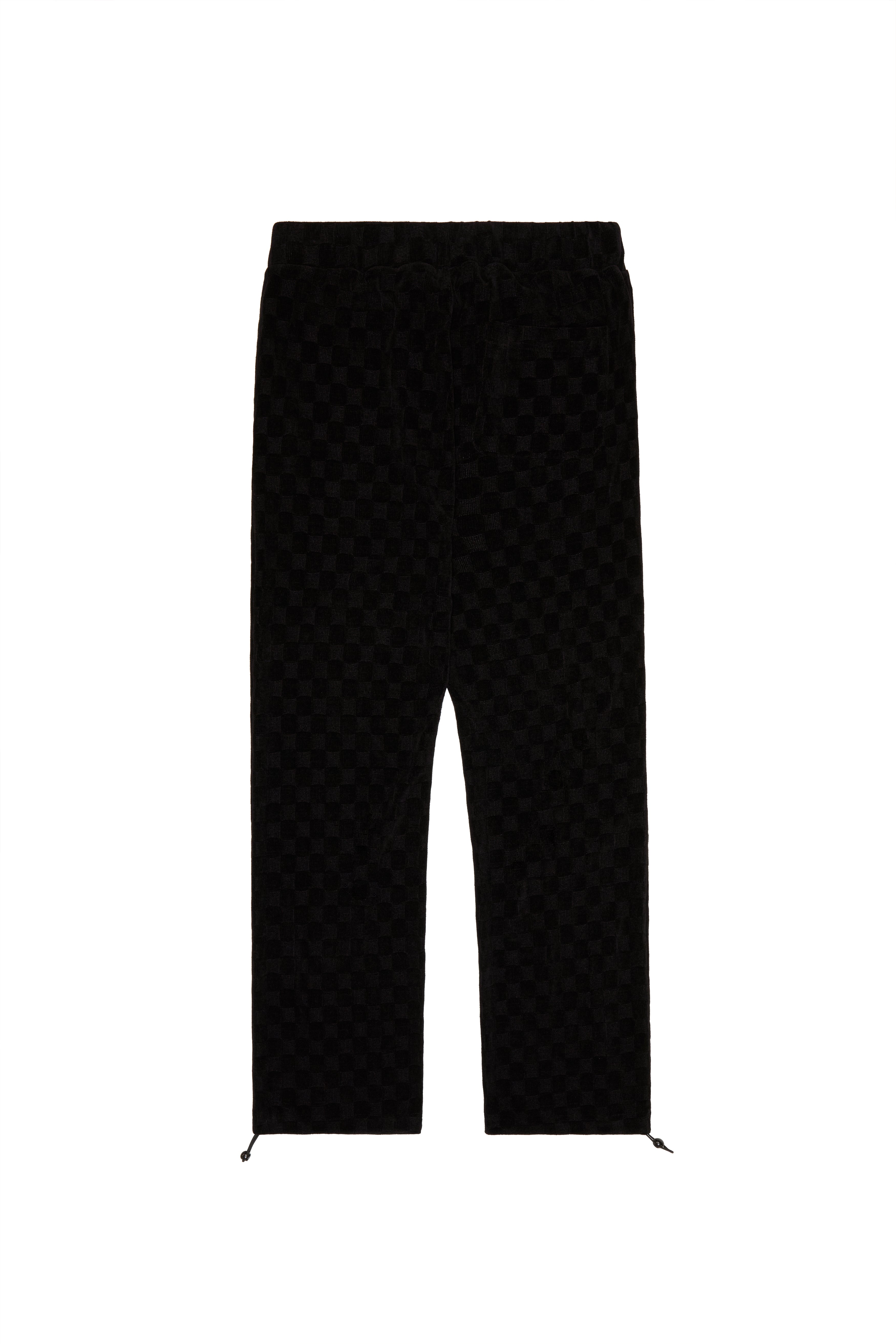 Elevated loungewear meets sleek design in these straight-leg joggers. Crafted from luxurious black velvet, they offer a soft, tactile finish with subtle sophistication. Perfect for transitional styling, these joggers balance comfort and refined streetwear appeal.