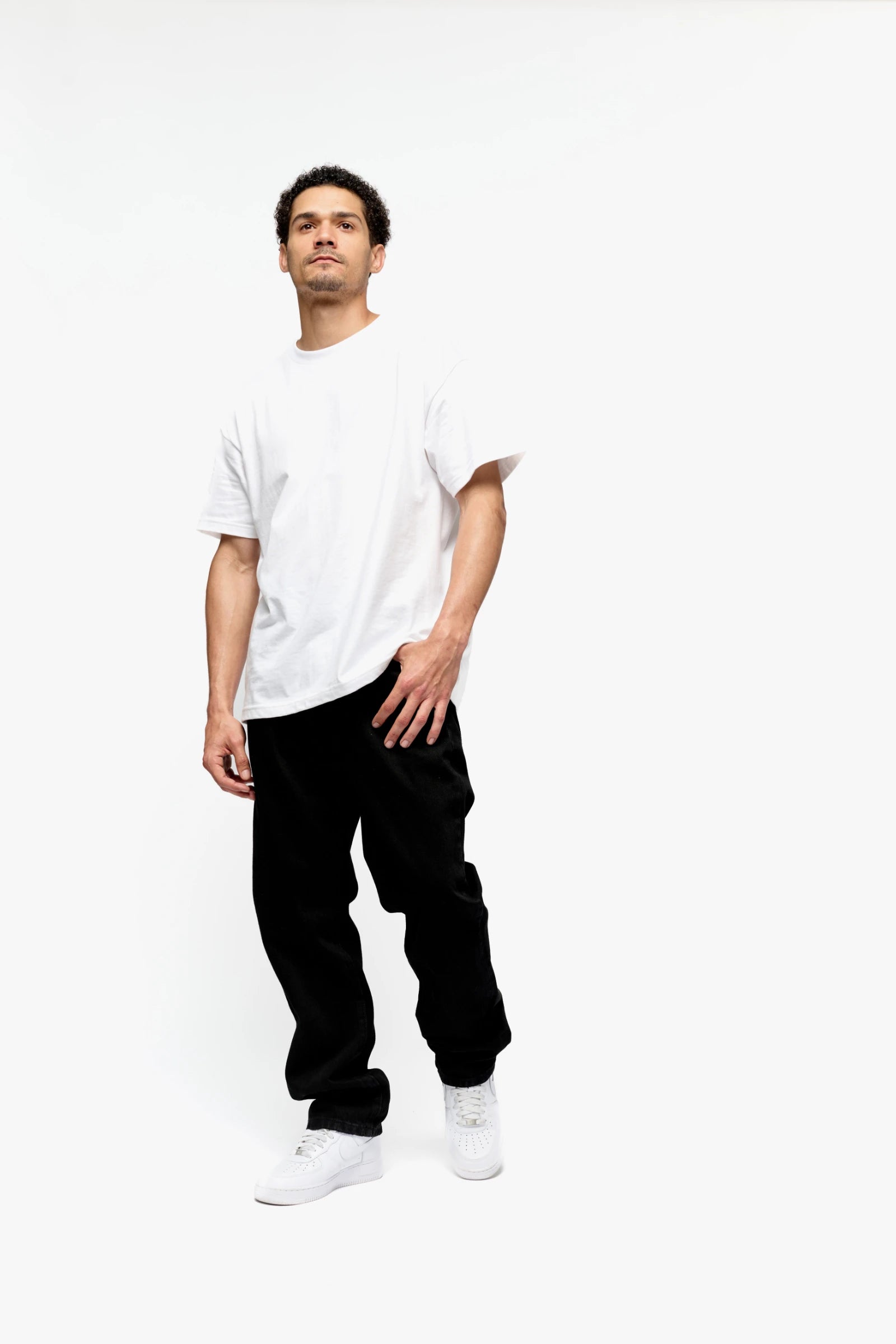 Model is 5’10” (155 lbs) and wears a size L top, 32 x 32 jeans.