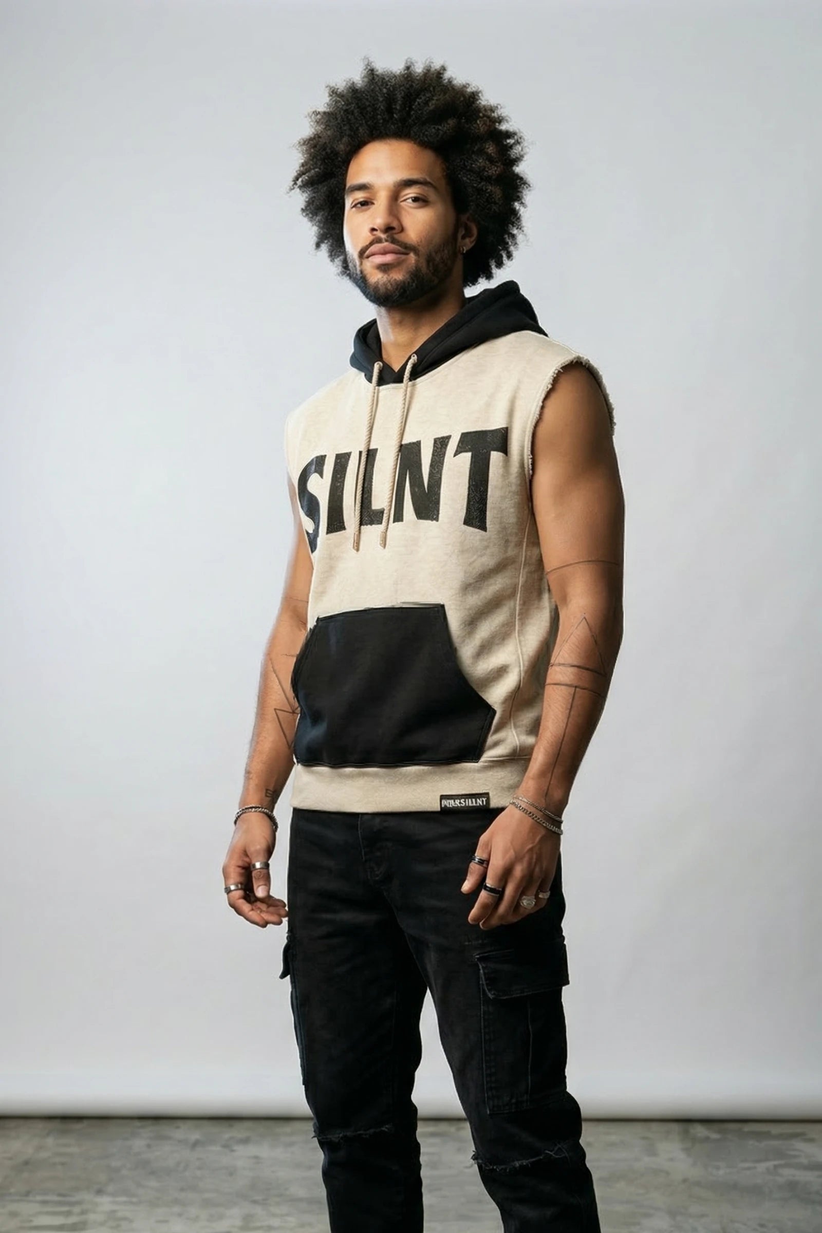 The "Rocky" Utility Hoodie in Grey by Silnt Chptrs redefines streetwear essentials with its bold design and practical edge. Crafted from a midweight shell, this vest offers a relaxed fit that layers effortlessly over your favorite tees or hoodies. Its clean lines and muted tones deliver modern versatility, while the sleeveless design and full zip front ensure comfort and ease of movement. Perfect for those who appreciate function and style, this vest is more than just an accessory—it's your new go-to layer.